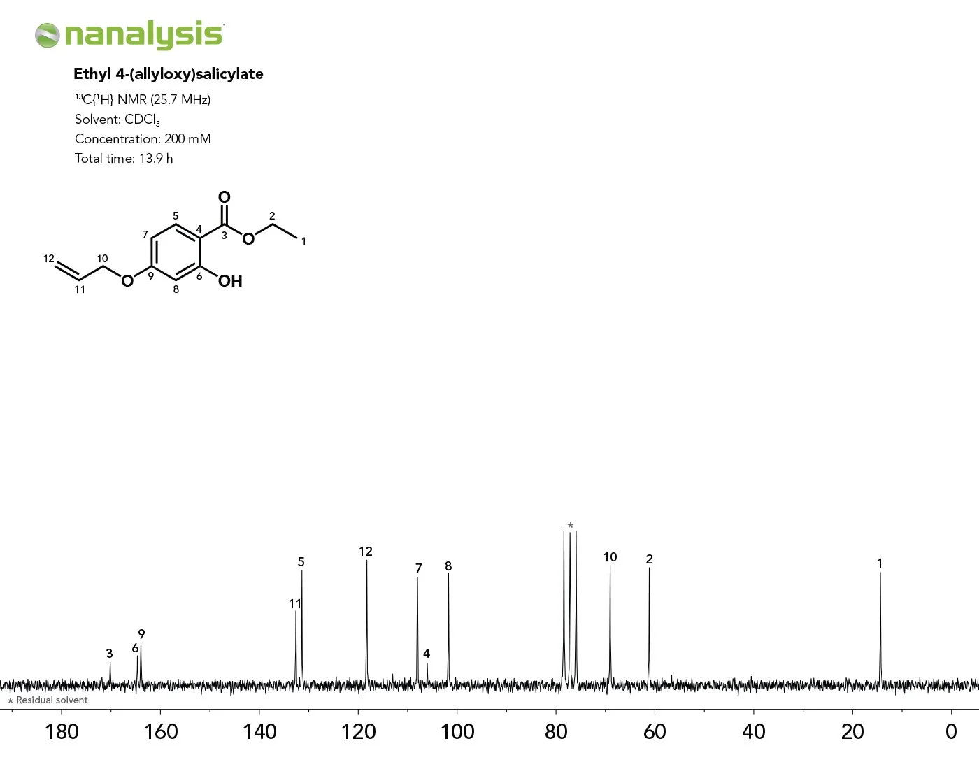 100 MHz Example Spectra 13C – 100 MHz Rifaximin Carvone Quinine Cholesterol Acetaminophen Aspirin DISFLAMOLL-DPO Ethyl-4-(allyloxy)salicylate Lamivudine trans-Ethyl-crotonate Lidocaine Vanillin SABOSTAB UV 65