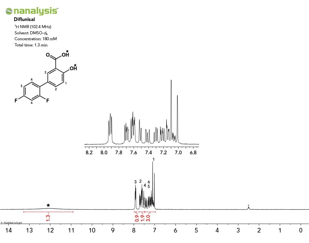 100 MHz Example Spectra 1H – 100 MHz Rifaximin Ibuprofen Cholesterol 2,2-difluoroethyl-p-toluenesulfonate Diclofenac Sodium Quinine Diethyl Phthalate 4 - Hydroxypropiophenone Back to top > Back to Spectra Library > 1H 60 MHz > Aspirin Brucine Diethyl phthalate Diflunisal Ethyl 4-(allyloxy)salicylate Lamivudine trans-2-Hexen-1-al